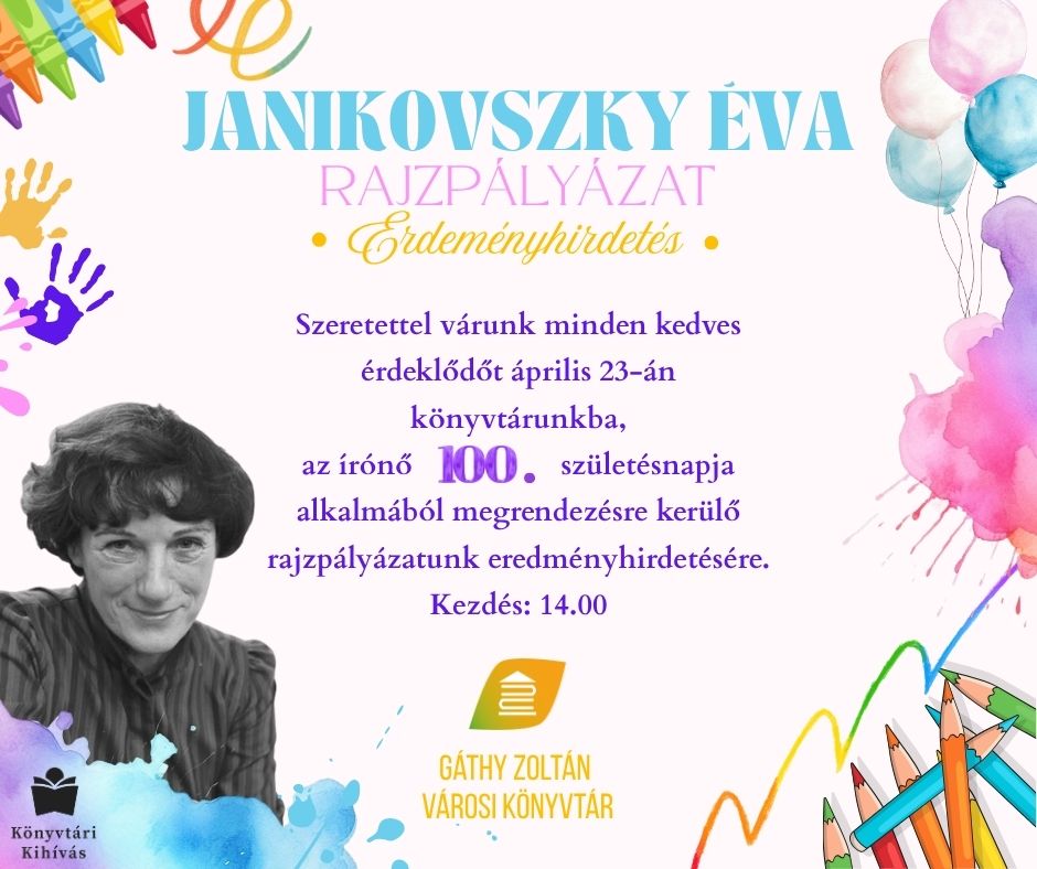 Kedves gyerekek! Köszönjük alkotásaitokat! Eredményhirdetéssel hamarosan jelentkezünk!KatalógusGyermekkönyvtár nyitvatartása